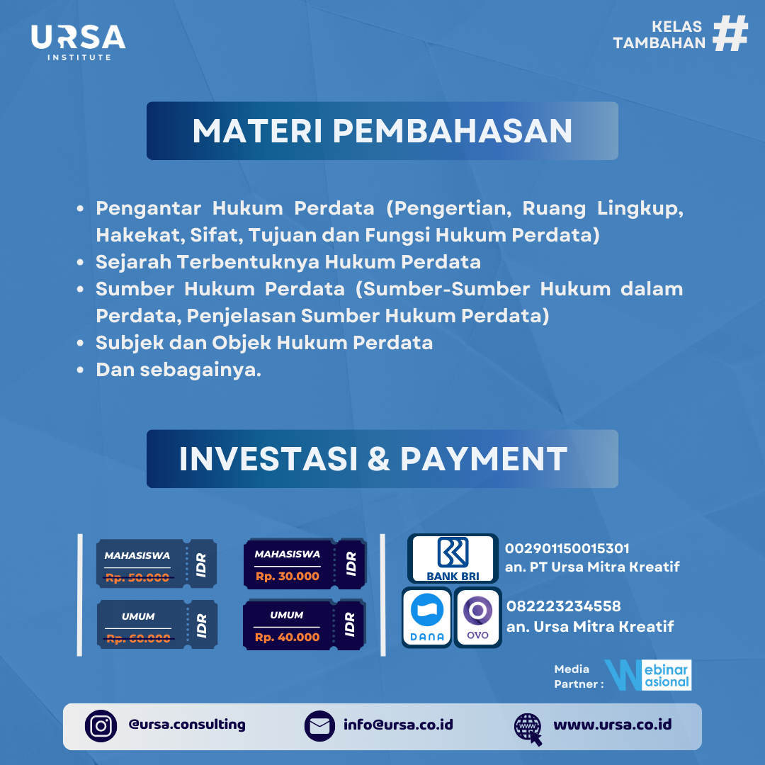 Kelas Tambahan hadir sebagai wadah pembelajaran secara daring yang bersifat dua arah yang membahas materi seputar ilmu hukum dengan menggunakan metode yang lebih fleksibel, karena peserta dapat belajar dan berdiskusi secara langsung dengan para pengajar yang ahli di bidangnya. Selain itu, terdapat juga latihan soal, kuis, dan ujian di setiap tingkatannya. Kelas ini akan dibawakan oleh pengajar yang berkompeten di bidangnya, yakni Bapak Dr (Cand) Ali Masykur Fathurrahman, S.H., M.H.